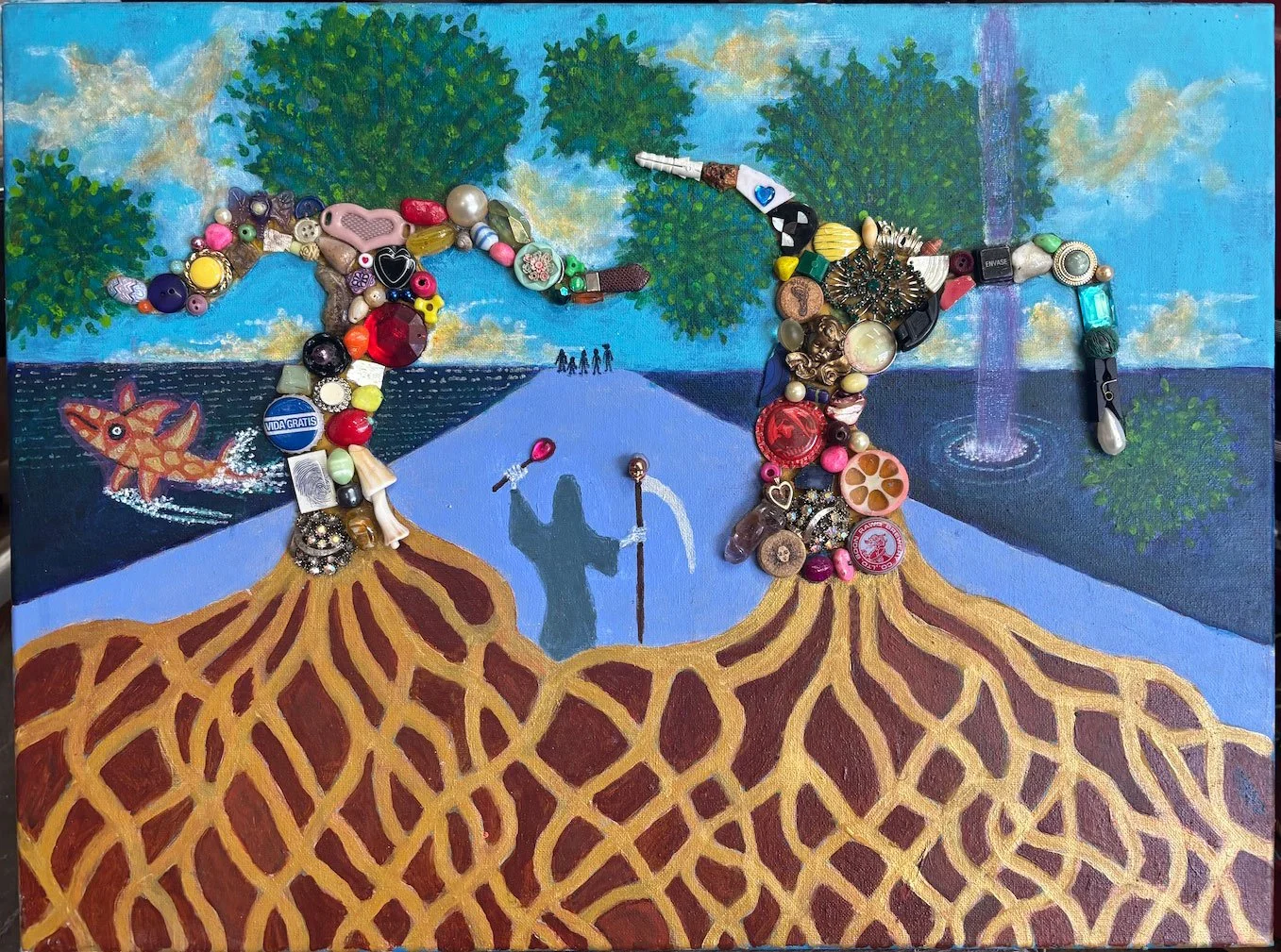 Cork Person w/Angel 17 x 21" 2019